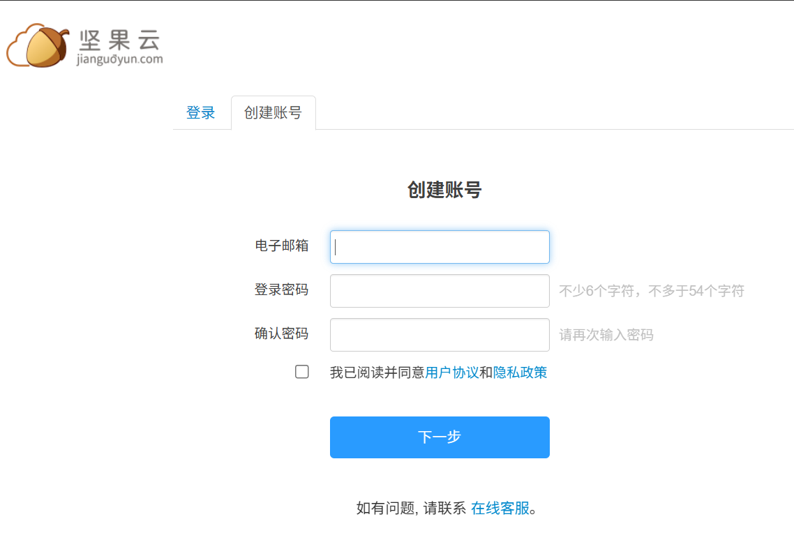 打开 坚果云 创建账号 ,输入 你的邮箱,设置密码,注册账号
